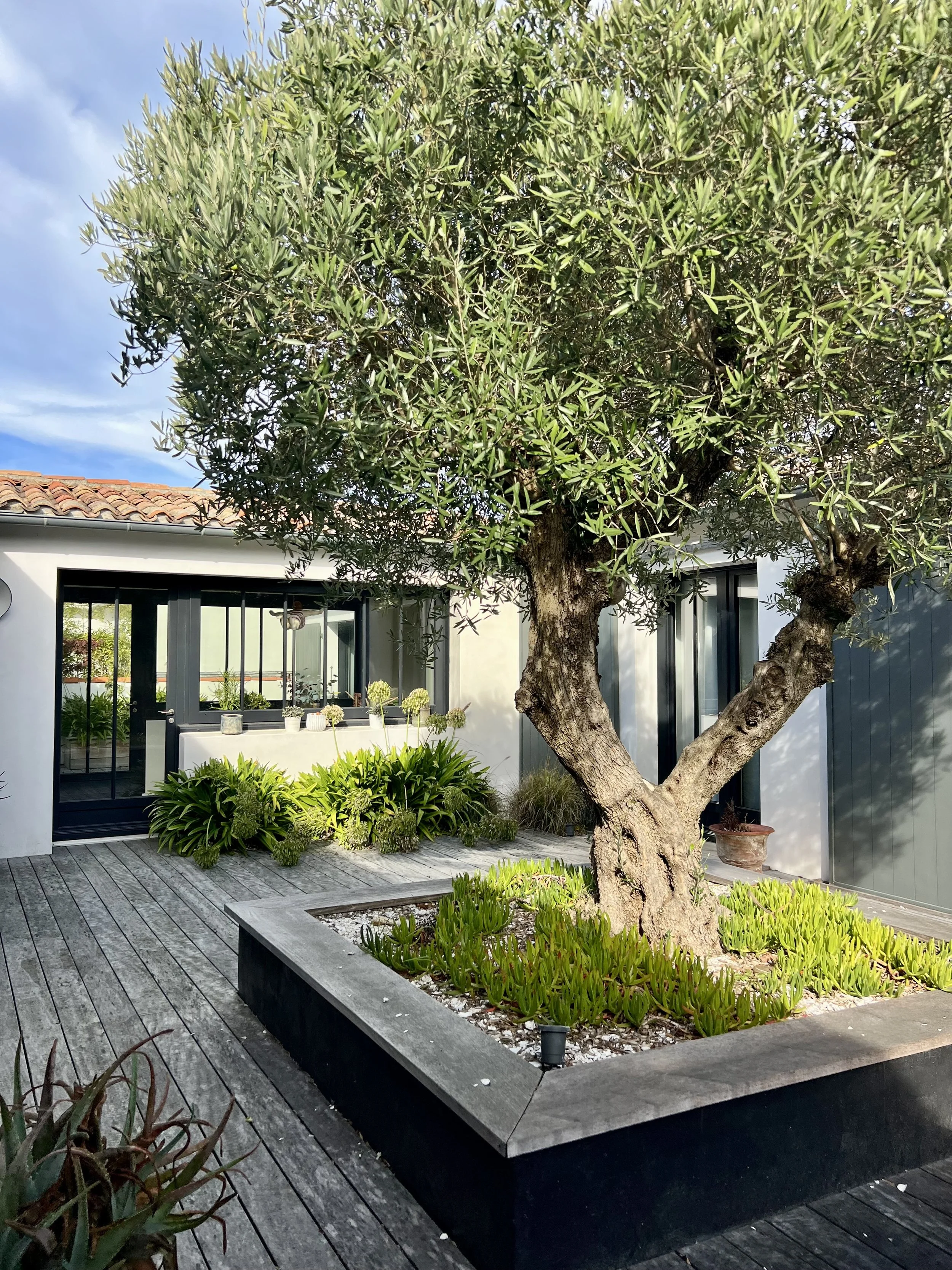 — Réaménagement du jardin, avec l’intégration d’une piscine, d’un boulodrome et de différents espaces extérieurs selon les expositions.